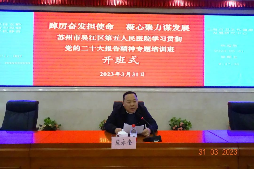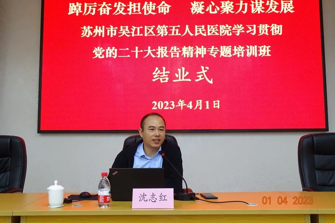 2023年3月31日至4月1日,吴江五院假座上海市卫生和健康发展研究中心,成功举办了“踔厉奋发担使命 凝心聚力谋发展”学习贯彻党的二十大报告精神专题培训班,医院领导班子和中层干部共46人参加了培训。